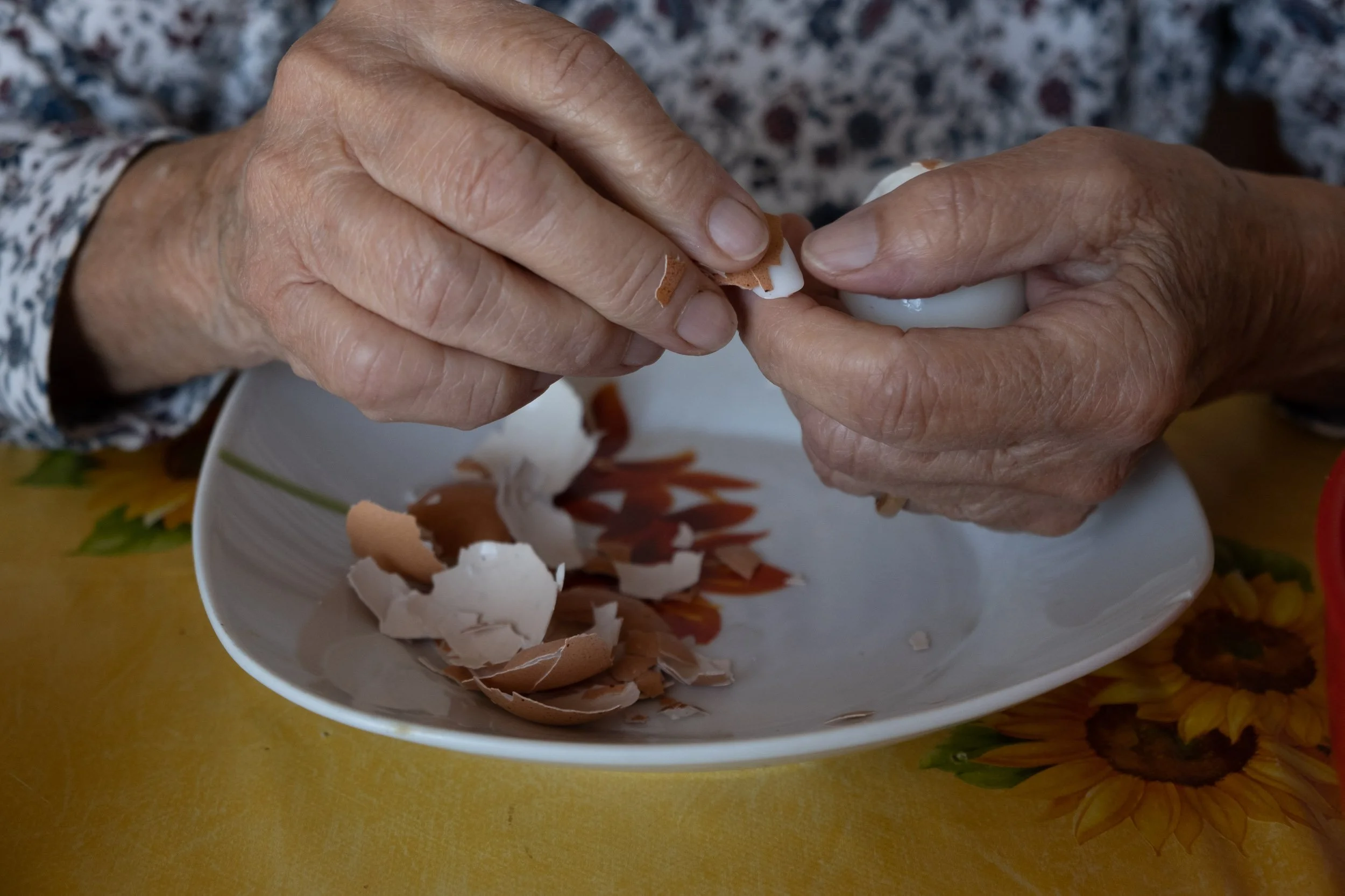 Confronting one’s own mortality. The clock ticks and Age swells to the seams. Fragile like the eggs she carefully peels. Sometimes she closes her eyes for hours, thinking pleasantly about the life she’s lived.